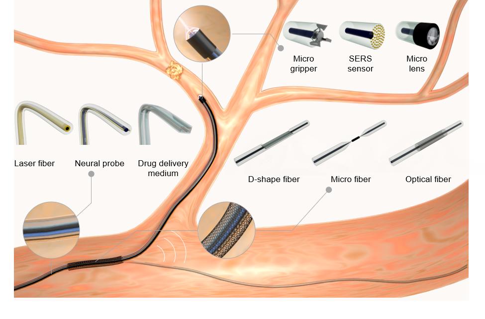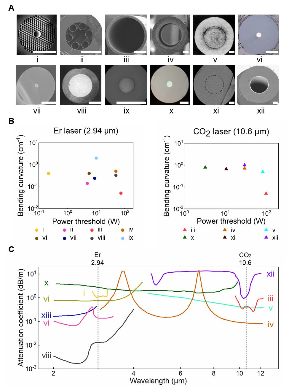 As a key component in the laser surgical knife system, the laser transmission medium needs to stably deliver laser energy to specific surgical sites. The article systematically elaborates on the research status of three main medical laser transmission media: light guide arm, hollow waveguide, and infrared fiber, and emphasizes the potential application of small-scale, highly flexible infrared fiber devices in minimally invasive surgical medicine. The article comprehensively analyzes the research progress of infrared fiber optic devices, compares the device performance of fibers in Er laser and CO2 laser from the perspectives of laser transmission threshold, optical loss, and mechanical flexibility (Figure 2), and points out that high optical loss and low mechanical strength are the key factors limiting the deep application of infrared fiber optic devices in surgery. In recent years, the rapid development of multi material fiber technology has led to the highly integrated integration of composite materials with different physical properties such as light, force, electricity, and magnetism, providing reliable research support for the development of high flexibility and low loss mid infrared optical fibers and further improving the functionality of surgical instruments.